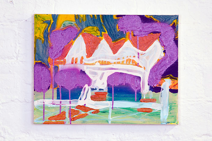 Most of my social interactions take place on my smartphone. Often I can’t remember if I experienced something in person or on social media. I’m interested in how paintings and methods of production can reflect this mediated reality. My impression and recollection of paintings and sculptures often have the quality of a dream diary, rapidly fading from a memory that can not be placed. I can picture work by my peers and have no idea if I saw it in their studio or on their Instagram page. I am curious how this phenomenon of a hybridized digital/offline memory can be expanded upon and even inverted. Instead of looking at a mural shrunk to the size of a deck of cards, what encounter can we imagine where a digital object has the same presence as a mural or history painting?