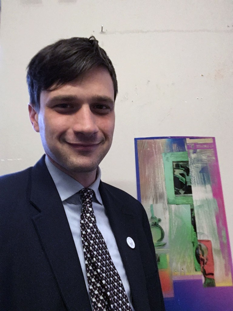 Ben Duax is a conceptual painter based out of Glasgow, UK. As a painter, his older work focused on the interplay of colours and the legacy of geometric abstraction. His current work investigates contemporary, digital experience, combining methods of digital dissemination with analogue paintings. The central question energizing his work is if physical objects can represent the rapid streams of information that increasingly replace offline social interactions.