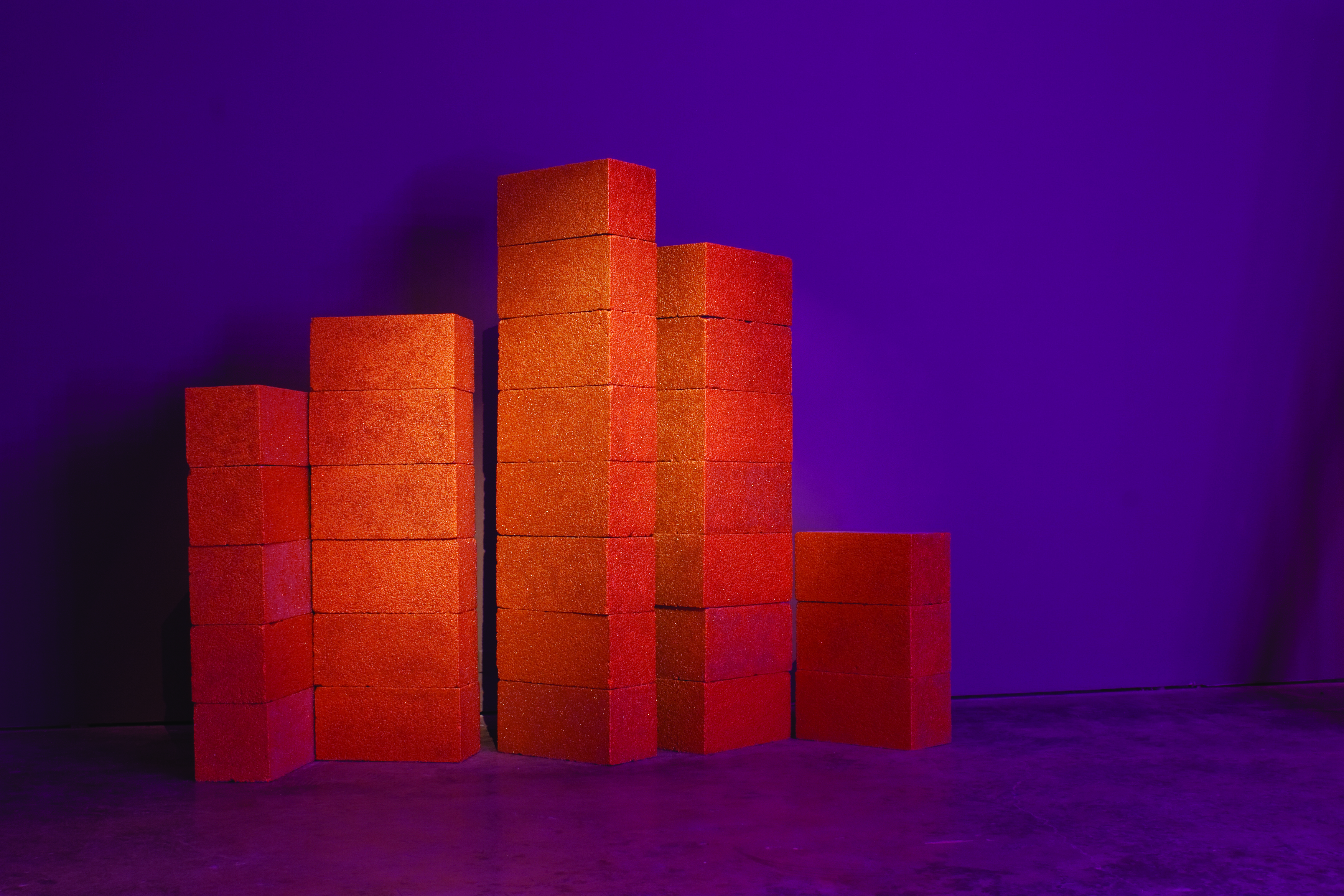 variable dimensions cinder blocks, paint, glass