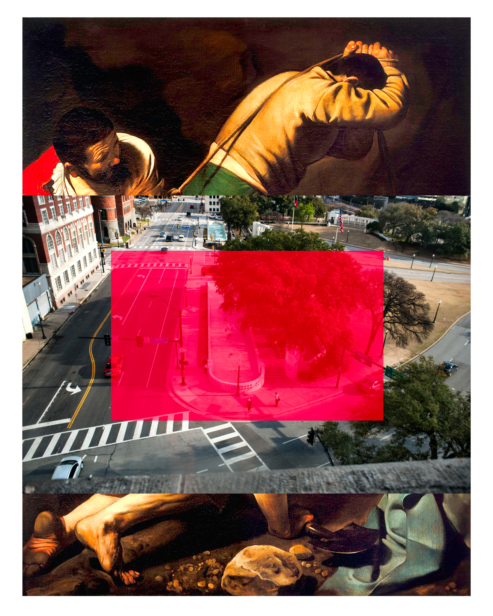 The framework of these interdisciplinary experiments lies in the intersection of documentary with allegory, combining performance with everyday actions, as well as group-participation and site-specific interventions. More recent projects involve researching the history or current affairs of a community or individual. It is important that projects develop slowly, through listening, understanding, and collaborating with a diverse community of ideas. This was the case when I researched the effects of urban planning and segregation in Dallas, as well as the concept of the alien and the other on the US/Mexico border. Often working long term and on-site with a project, I use my camera on location as a notebook before staging images, performances or filming. Regularly spending time making diagrammatic sketches in my studio and searching for archival imagery and articles in libraries, there is a natural development for each project. Site visits and active research in the field has led to meeting and working with a diverse range of people, including hairdressers, mechanics, and butchers in ‘You and I’ (Paris), or oil riggers, ranchers and border patrol agents (US/Mexico border). My methodology for investigating power and control in our society is to use an interdisciplinary approach to combine performance, text, portraits and physical activities while reflecting on human history. My goals continue to include revealing the memories, actions or dynamics of repression while promoting a more open and free discourse for change and dignity.