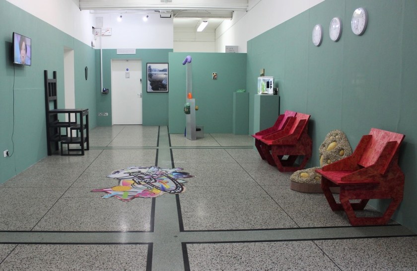 David’s curatorial projects include Window Sill at Griffin Gallery Perimeter Space (2017), The Waiting Room at Wimbledon Space, Wimbledon College of Art (2018) and The Collector’s Room at JGM Gallery (2020), all of which transformed a gallery space into a domestic space. For Window Sill a 16 meter long window was adorned with lace curtains and artist’s sculptures on the window ledge; for The Waiting Room, David considered the ‘after-life’ waiting area in the 1988 film Beetlejuice and recreated a space complete with TV, fish tank, plants, clocks and chairs; and for The Collector’s Room, David replicated a fictional collector’s parlour room with an interest in stage magic, illusion and Harry Houdini placing artworks from 44 artists in which she found a connection to the ‘Golden Age of Magic’.