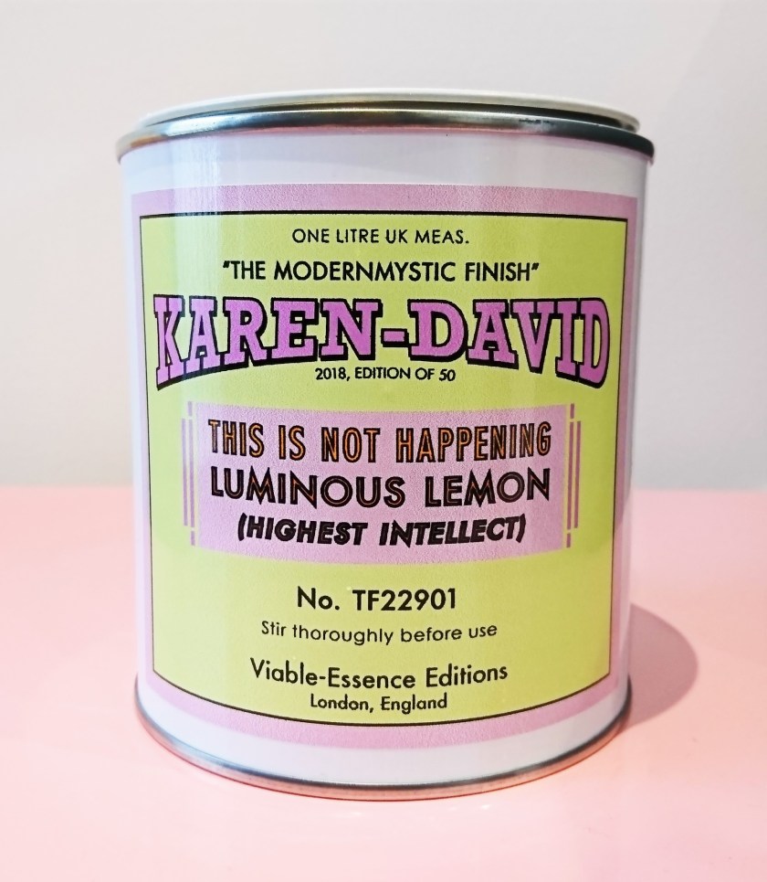 Karen David is a London-based artist, curator and lecturer. In 2018 she was awarded a studentship for a practice-led PhD with a studio focus on mythmaking, fictional narrative, communes and para-anthropology. Recent group shows include the touring exhibition Liquid Crystal Display at MIMA (Middlesbrough Institute of Modern Art) and Site Gallery alongside artists including Robert Smithson, Eva Rothschild and Kiki Smith.