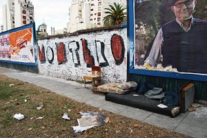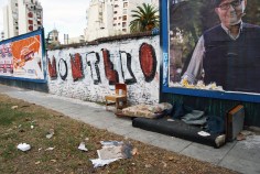 Wooden chair made from scavenged materials in Buenos Aires, placed back out on the street and photographed