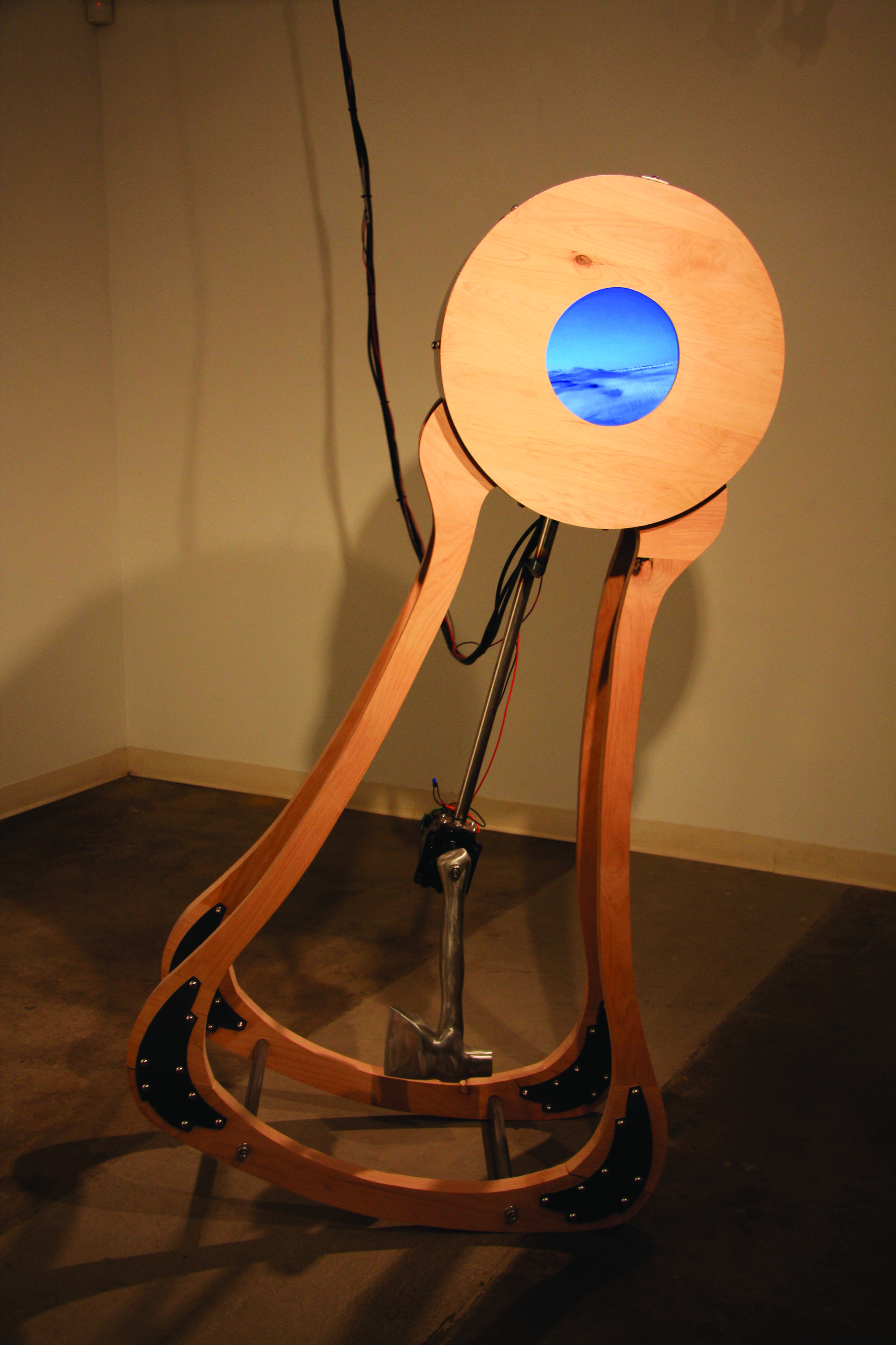 Self-Leveler (aka Tipping Point), 2009 Wood, metal, computer, wii remote, monitors, cables, video, motor, aluminum axe, MAX Like Loading...