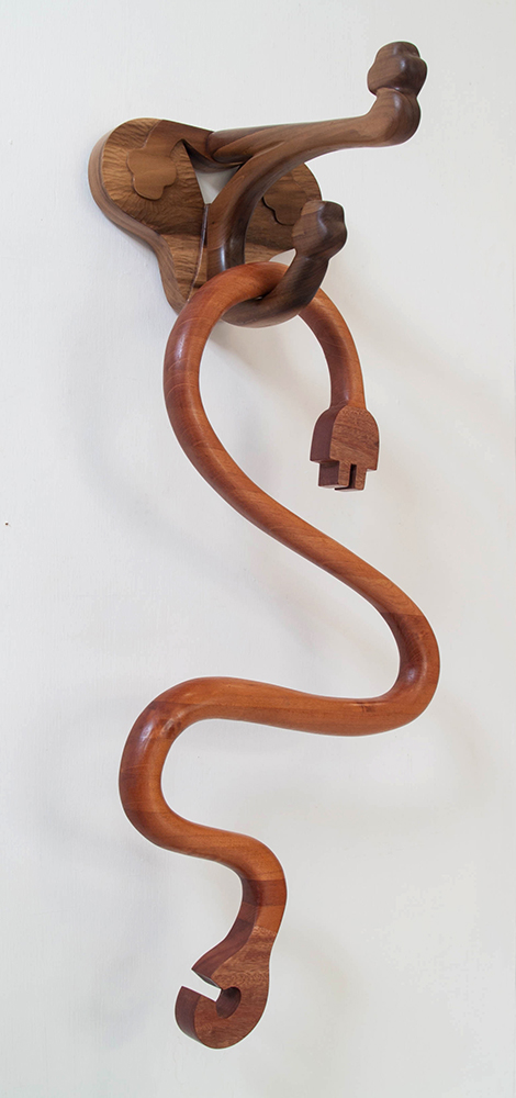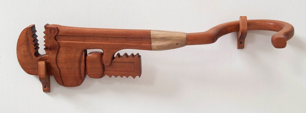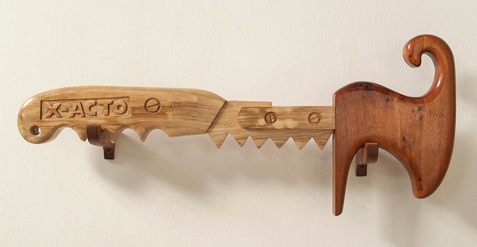 Maxx’s wooden tool sculptures are part of a continuing exploration into the idea of the gender hybrid. As a gender variant person Maxx’s gender is outside the traditional boy/girl binary of gender. The sculptures are hybrid tools. The viewer or user has to invent a new use or way of using or seeing the hybrids.