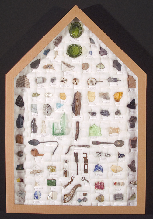 The installation entitled, Picking Up The Pieces, a history project constructed after Hurricane Katrina, documents the significant loss of architecture in New Orleans, the loses of residents’ lives, and the city’s future history. The project also focuses on the hidden history that was uncovered by the floodwaters and demolition. The project includes archeological-like boxes, written pieces by visitors, a time capes, a video of broken water mains, demolition lists, and installation pieces. This project is all digitally archived at the Historic New Orleans Collection.