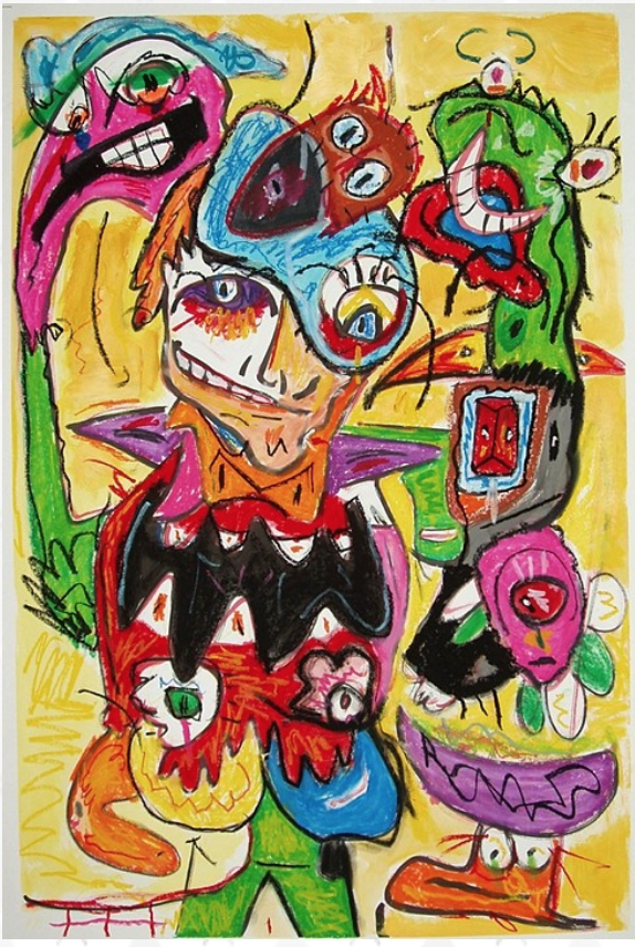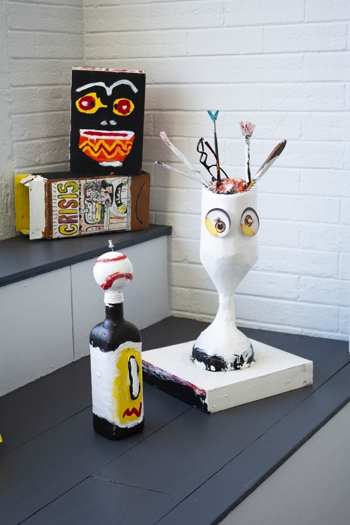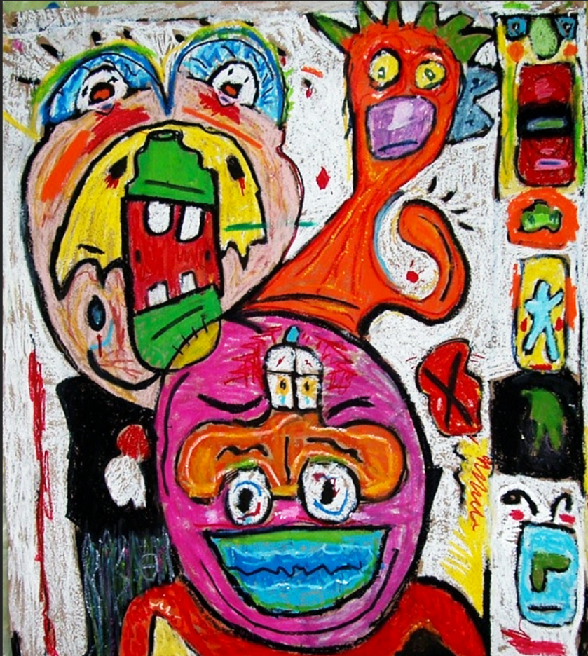 My work explores the intersections of my past and present. Fueled by a never-ending need to draw and create. Influenced by daily life, Americana, modern art, loud music, and comic books. Armed with paint, found objects, canvas, discarded materials, and recurring marks. I create a language and visual exploration reflecting my journey in today’s world.